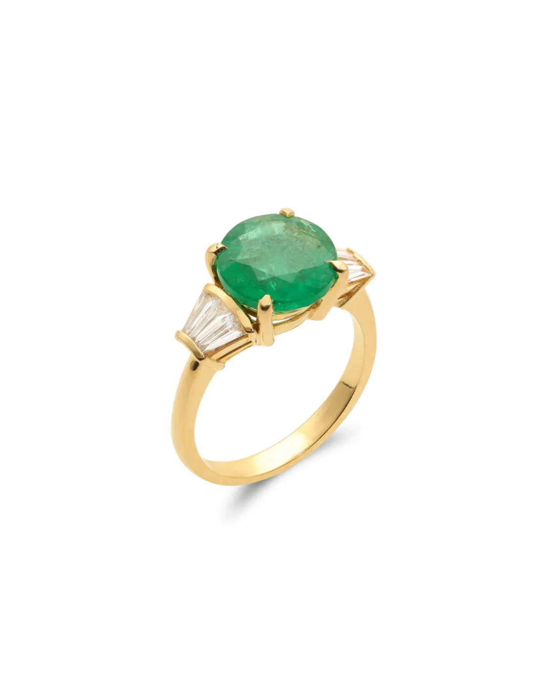 ANILLO ORO AMARILLO, ESMERALDA Y DIAMANTES