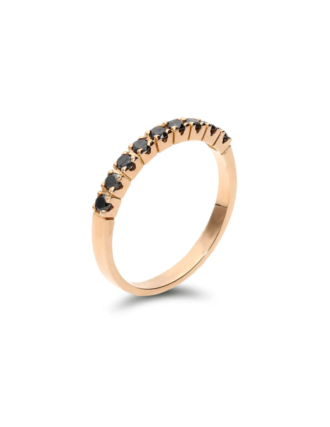 Anillo de oro amarillo 1ª Ley (750 mmas) media alianza con el toque de color de los diamantes negros talla brillante. Talla 14.