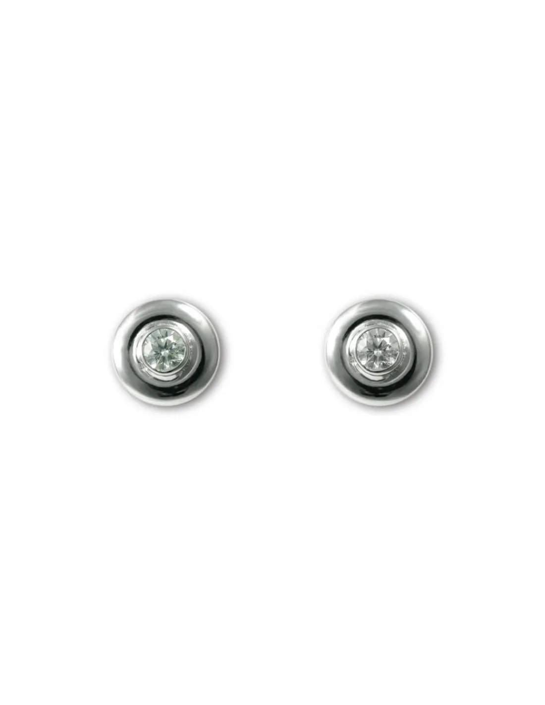 Pendientes dormilonas en Oro Blanco 1º Ley ( 750 mmas ) con diamantes engastados en boquilla. Un clásico ideal para una novia y para usar día a día.