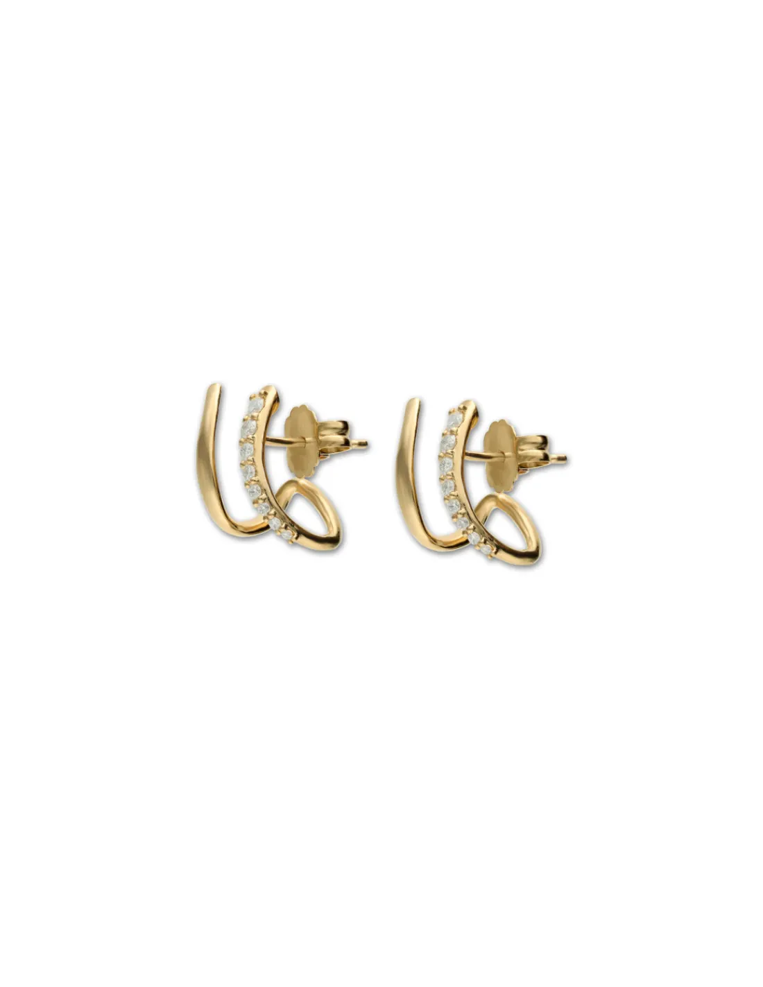 Pendientes de oro amarillo 1ª Ley (750 mmas) con diamantes talla brillante. Una joya original en tendencia y llena de estilo.