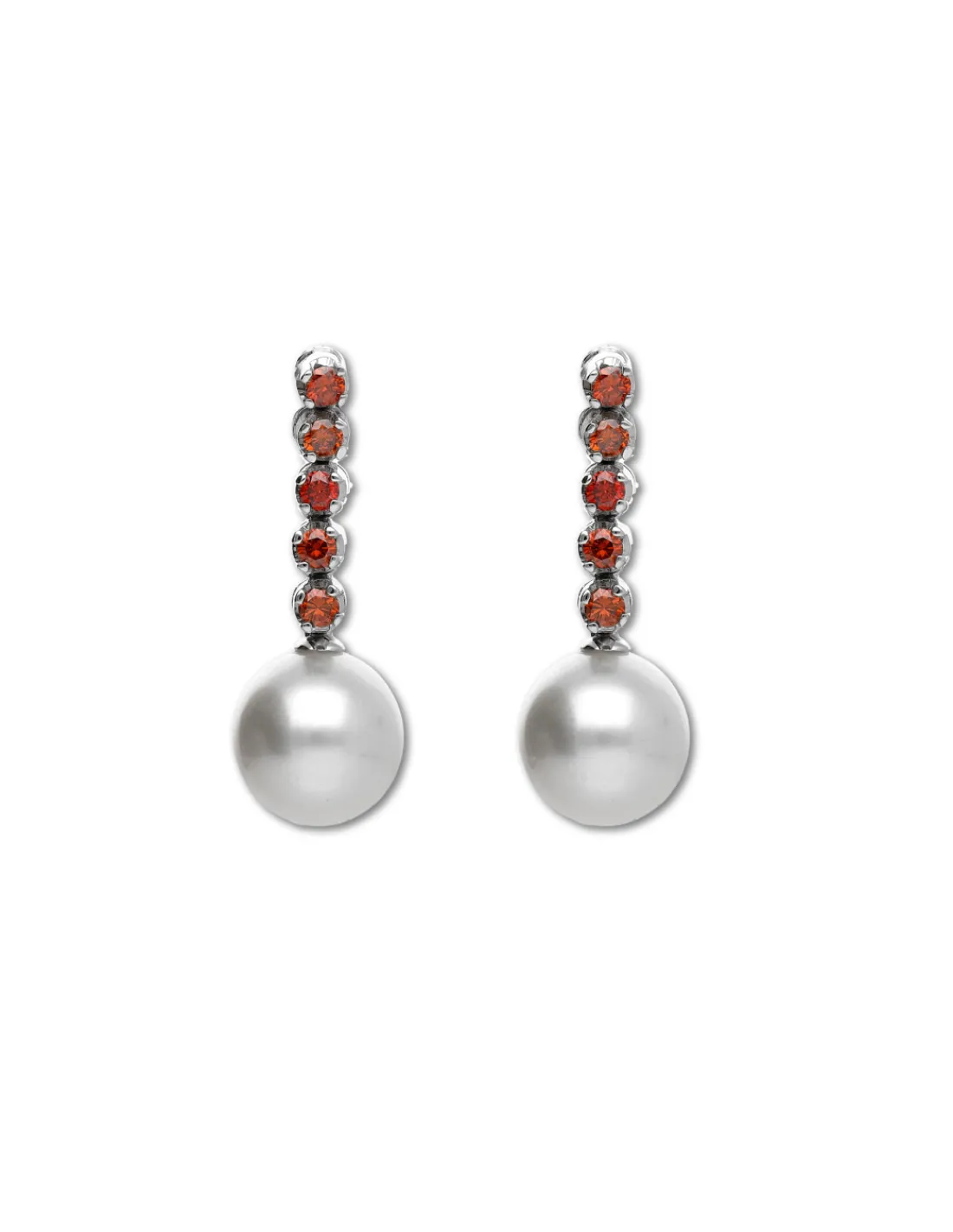 Pendientes de oro blanco 1ª Ley (750 mmas) con barra con movimiento de diamantes talla brillante color coñac de la que cuelga una perla australiana. Una joya única e inusual gracias al color coñac intenso de los brillantes que lo convierte en una pieza exclusiva. Cierre de palillo y presión. Largo aproximado 2,5 cm.