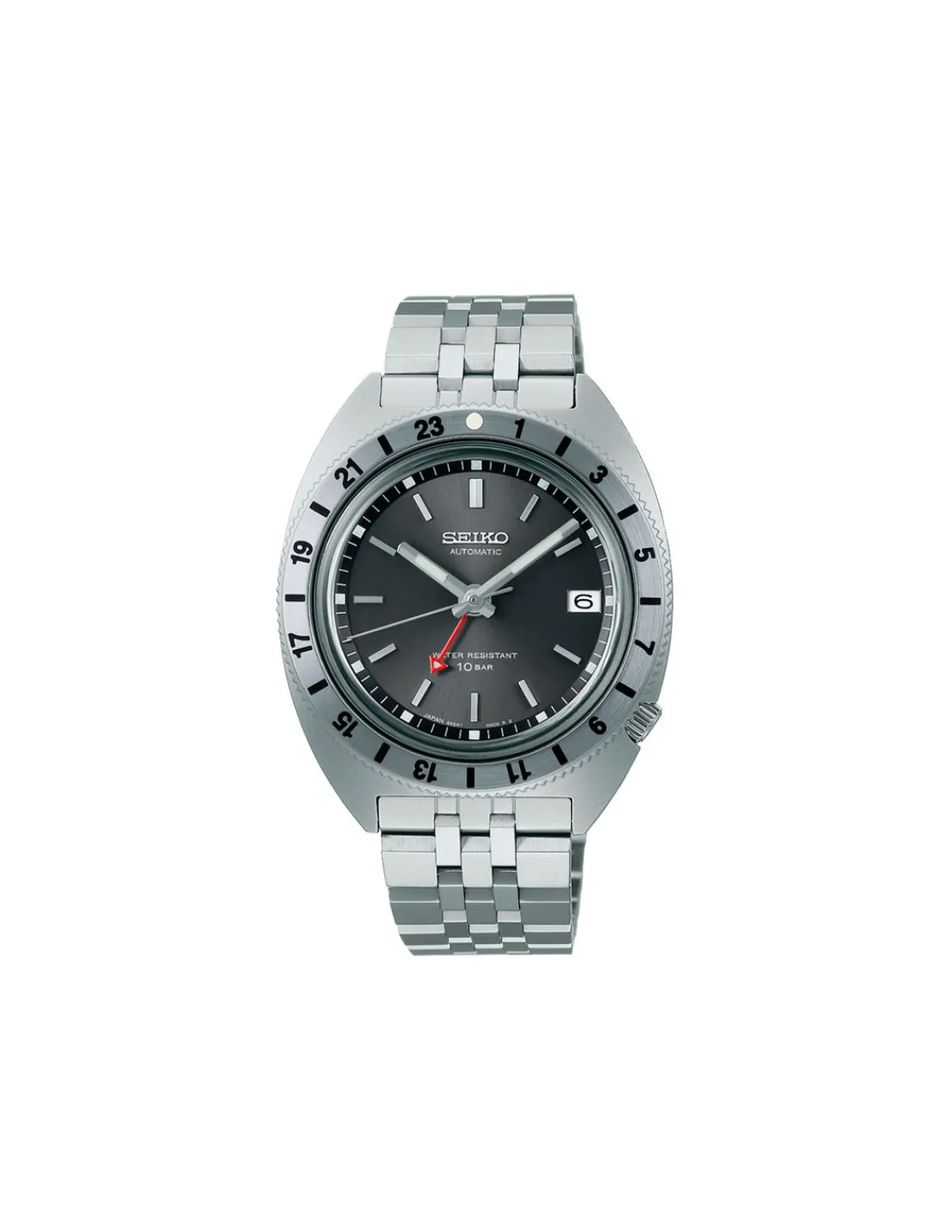 Reloj Seiko Prospex GMT Edición Limitada SPB411J1 para hombre con caja de acero inoxidable, esfera gris y brazalete. Movimiento automático con capacidad de carga manual.