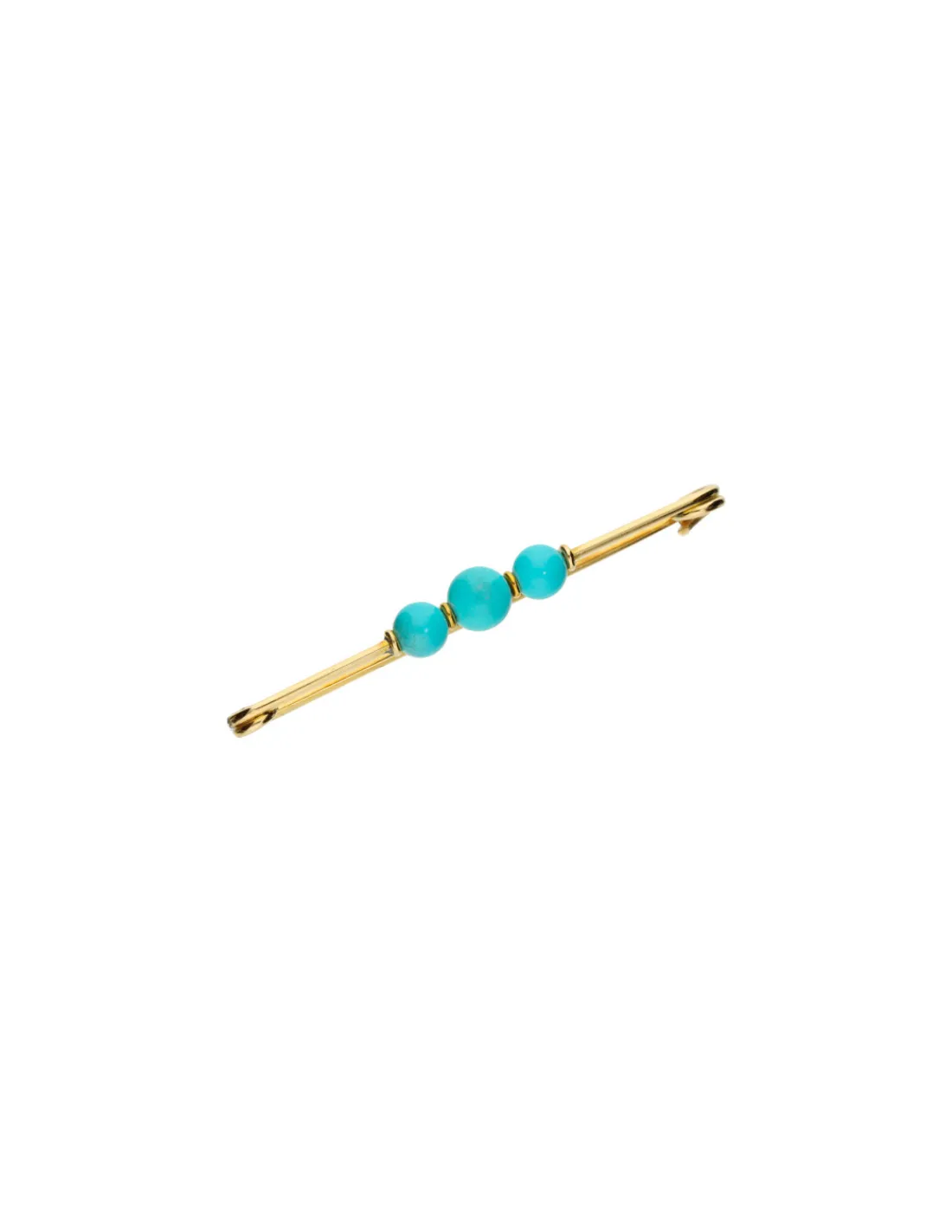 Alfiler de oro amarillo 1ª Ley (750 mmas) con tres bolas de turquesas.
