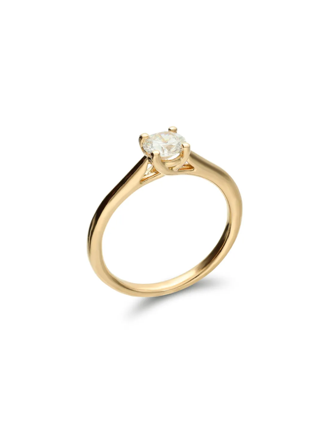 Anillo-Solitario de oro amarillo 1ª Ley (750 mmas) con diamante talla brillante. Una pieza perfecta para pedida de mano.