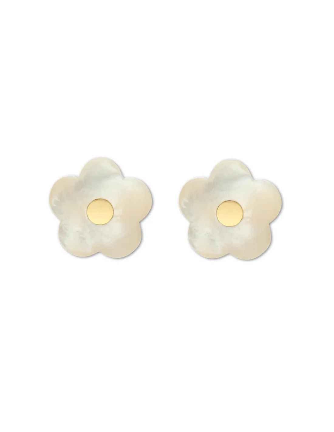 Pendientes de oro amarillo 1ª Ley (750 mmas) y nácar. Un diseño juvenil con forma de flor. Cierre omega.