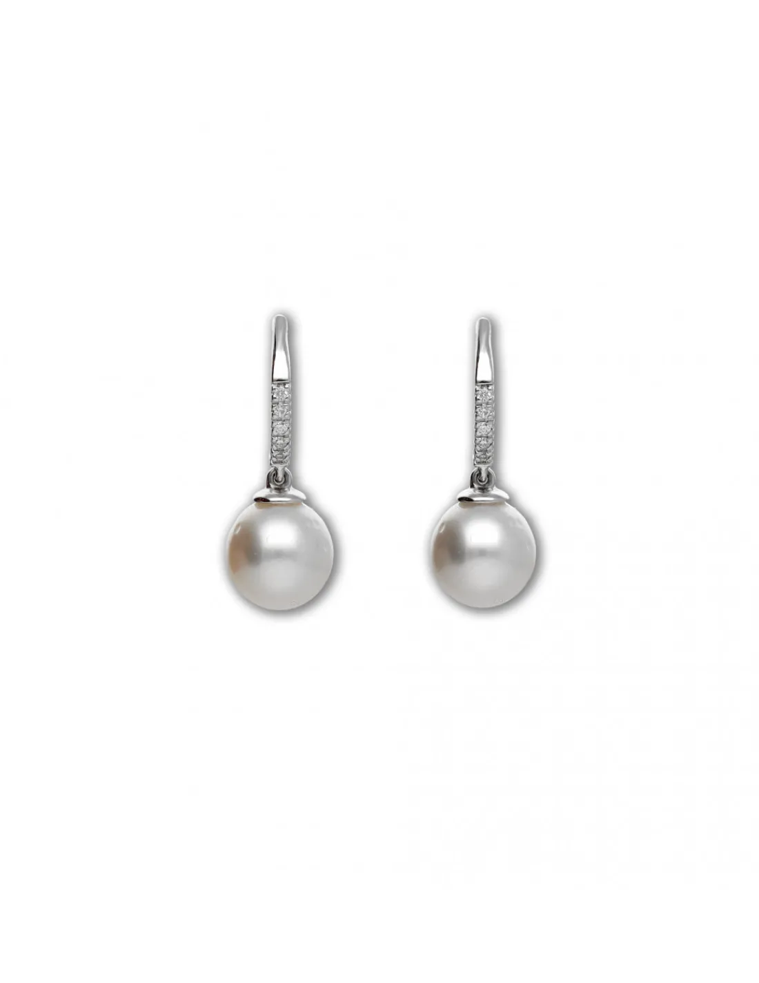 Pendientes de oro blanco 1ª Ley (725 mmas) con diamantes talla brillante y perlas.