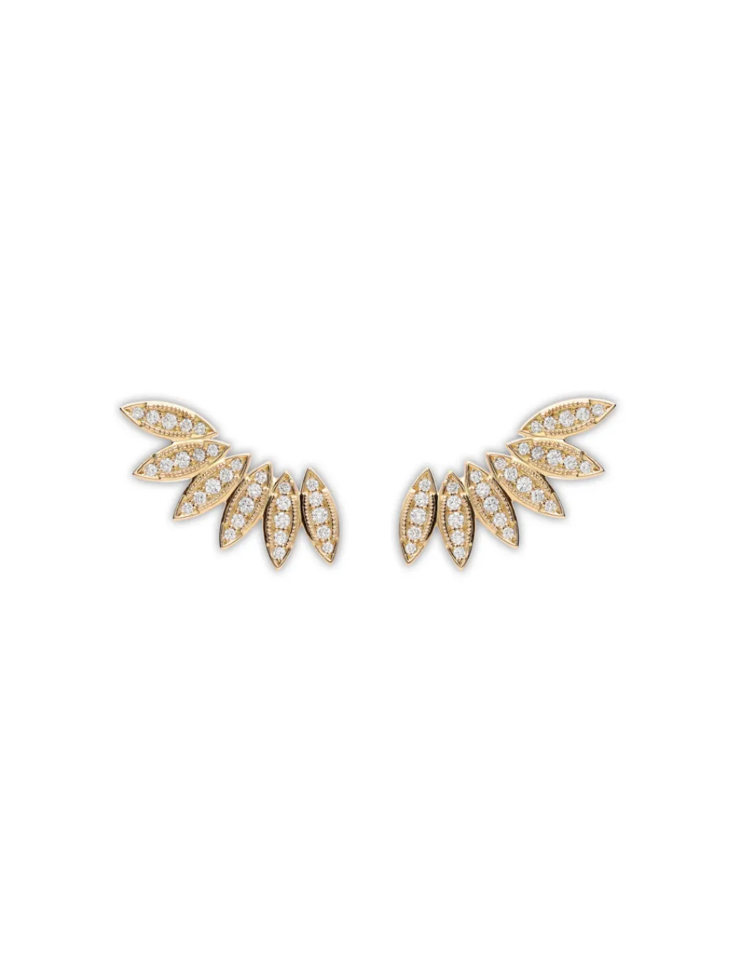 Pendientes de oro amarillo 9 kt (375 mmas) con diseño de hojas y diamantes engastados. Esta joya en tendencia es la opción idónea para fuertes personalidades.