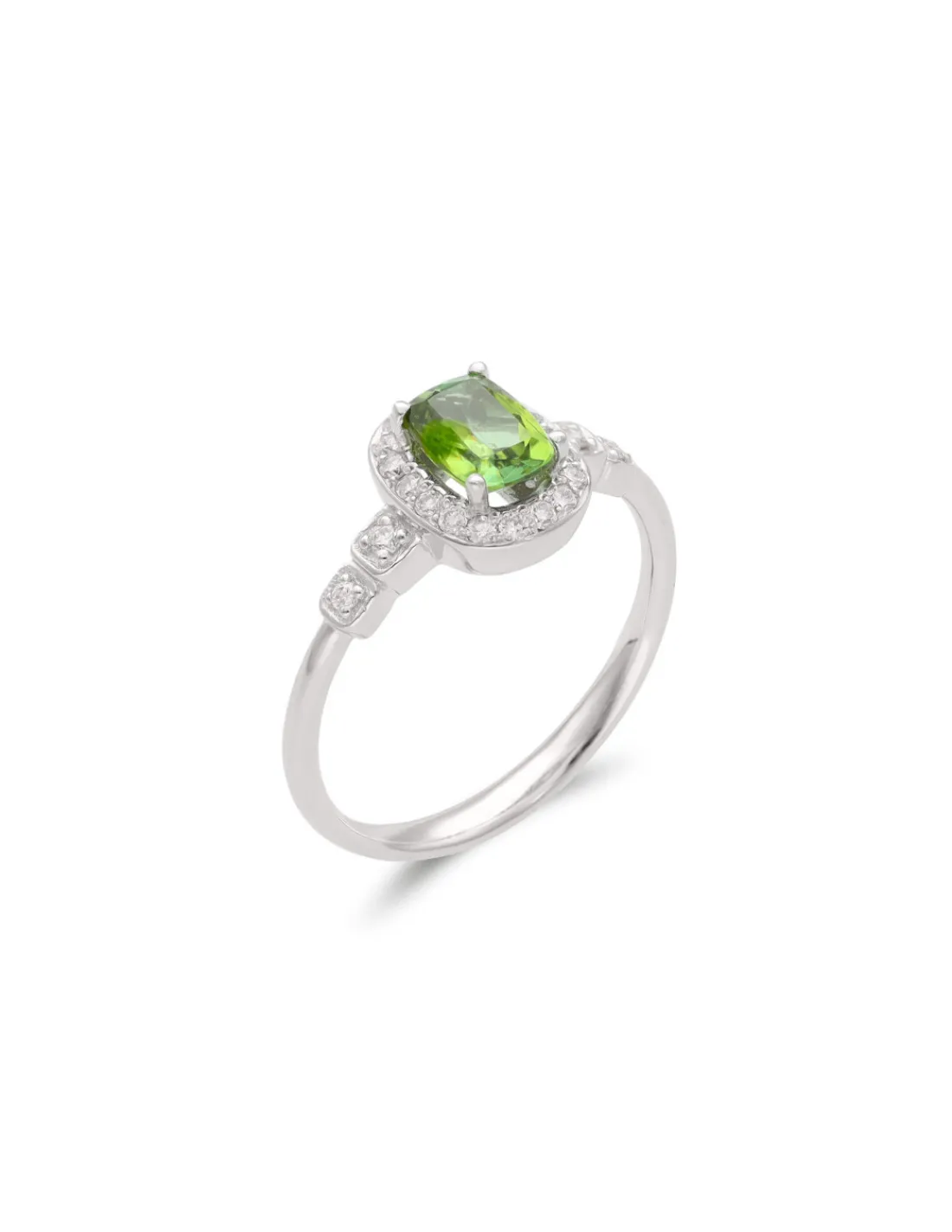 ANILLO DE ORO BLANCO, TURMALINA Y DIAMANTES