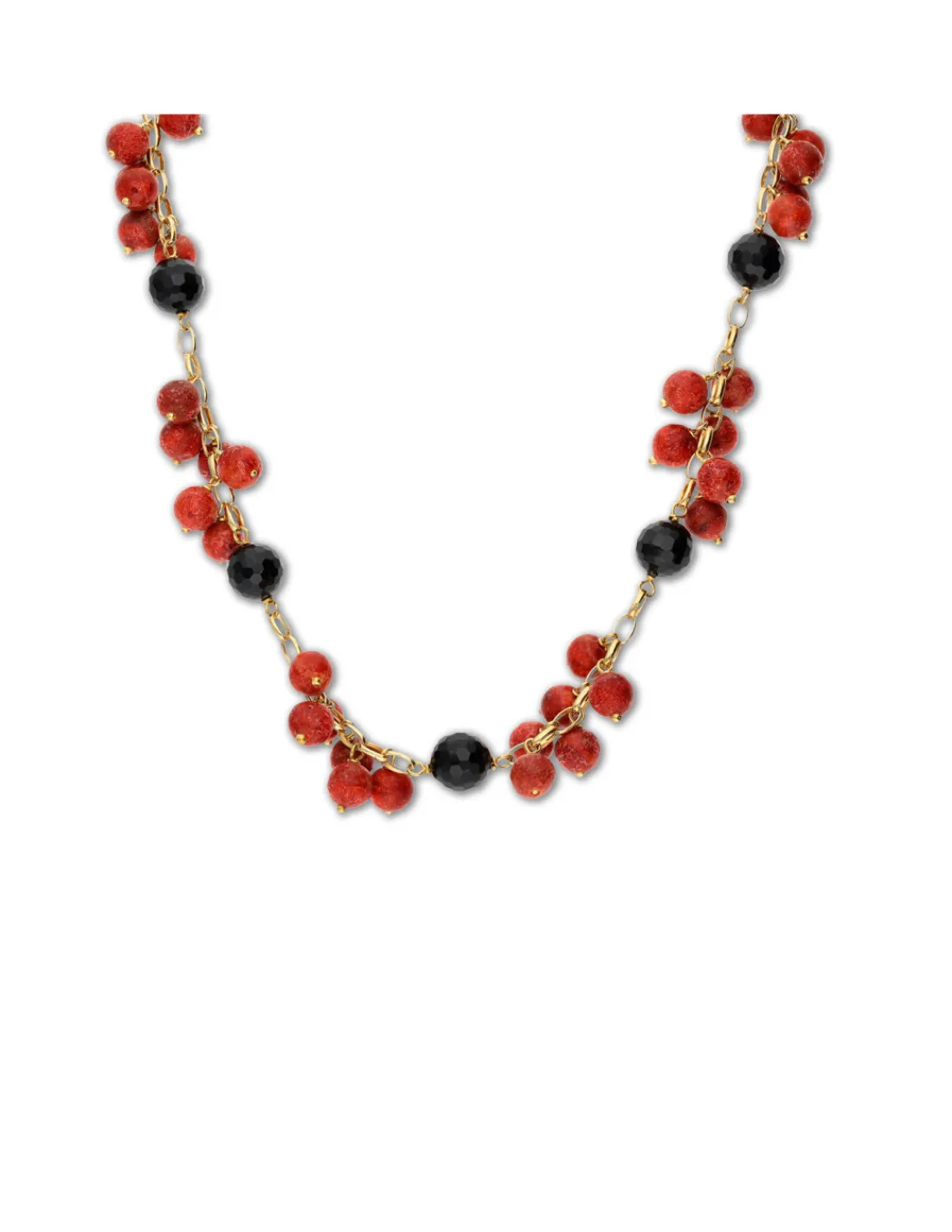 GARGANTILLA DE ORO AMARILLO, ÓNIX Y CORAL