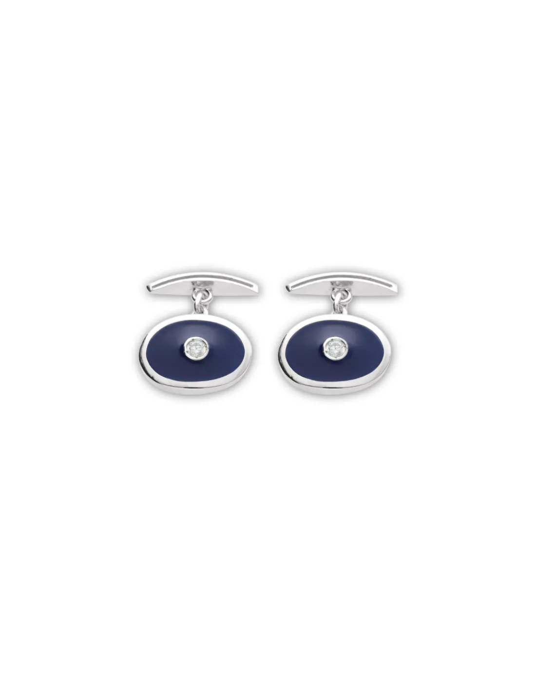 Gemelos de plata 1ª Ley (925 mmas) ovalados con esmalte azul y circonita.