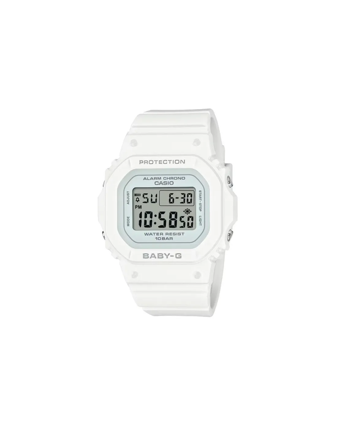 Reloj Casio Baby-G con caja de resina de 37,9 mm de diámetro, esfera digital, cristal mineral combinado con correa de resina. Resistente al agua hasta una presión de 10 bares. Duración aproximada de la batería: 2 años. Movimiento de cuarzo japonés. En un versátil color blanco que combinará con cualquier estilo que elija, este reloj es un accesorio ideal en cualquier época del año.