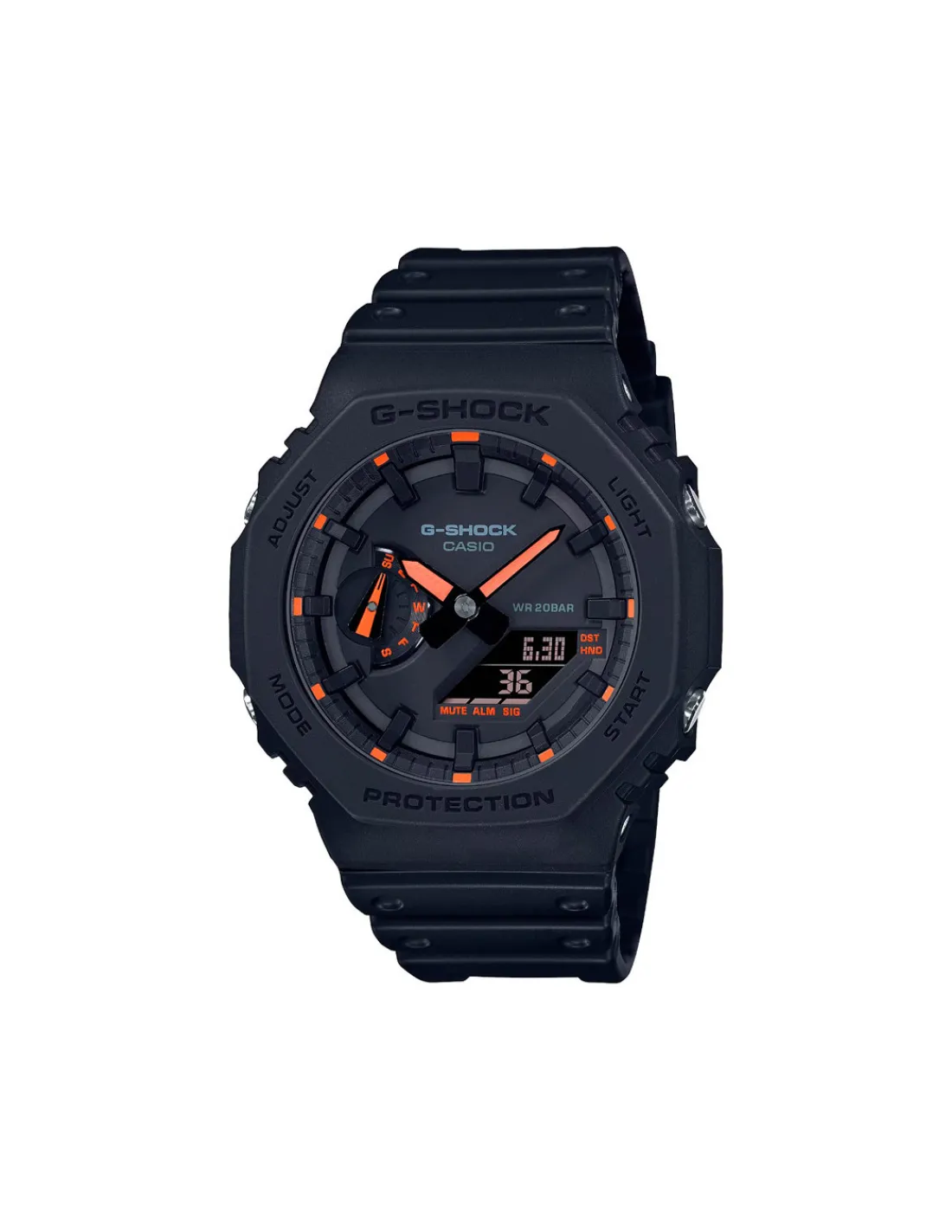 Reloj Casio G-Shock GA-2100-1A4ER con caja de carbono/resina, esfera negra y correa de resina. Sumergible 200 metros. Movimiento de cuarzo japonés.