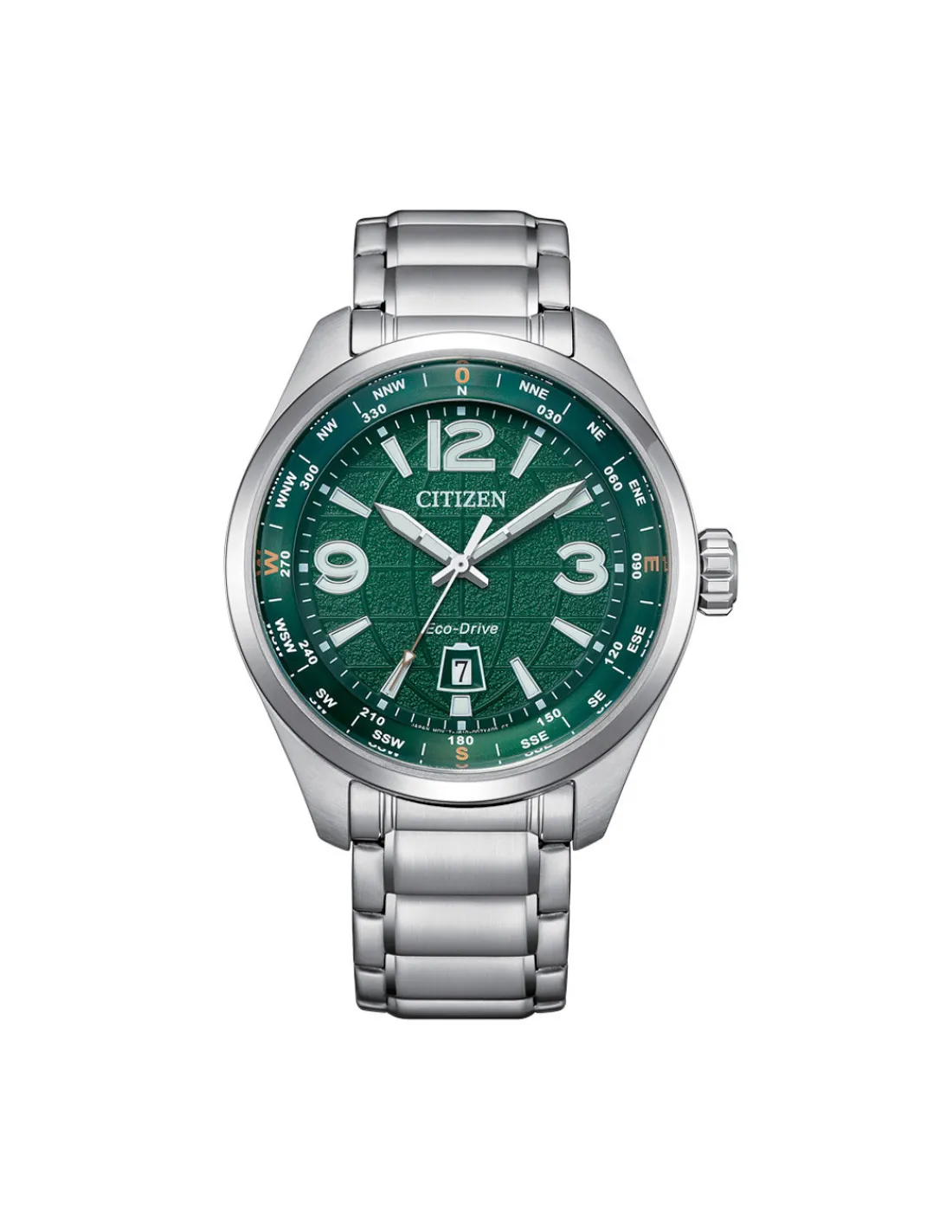 Reloj Citizen Pilot Traveler Eco Drive AW1830-88X para hombre con caja de acero, esfera verde y brazalete. Movimiento Eco Drive J810 con reserva de carga 8 meses.