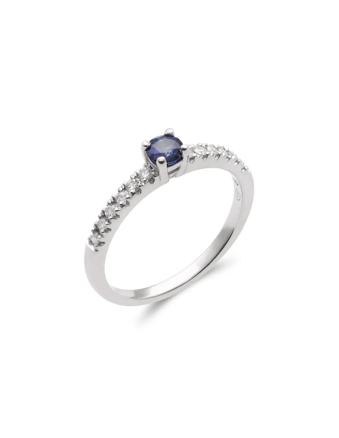 Anillo de oro blanco 9 kt (375 mmas) con zafiro y diamantes. Un diseño que transmite armonía y elegancia.