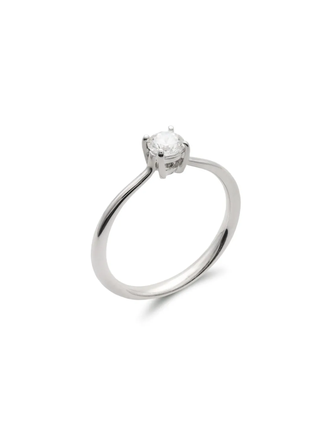 Anillo-Solitario de oro blanco 1ª Ley (750 mmas) con diamante talla brillante en el centro engastado en cuatro garras.