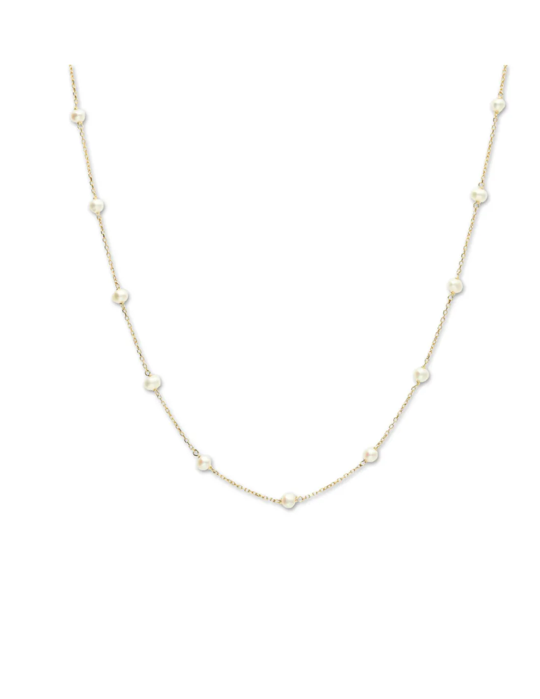 Gargantilla de oro amarillo 1ª Ley (750 mmas) con varias perlas. Una pieza minimalista perfecta para combinar con otras joyas. Largo cadena 40 cm.