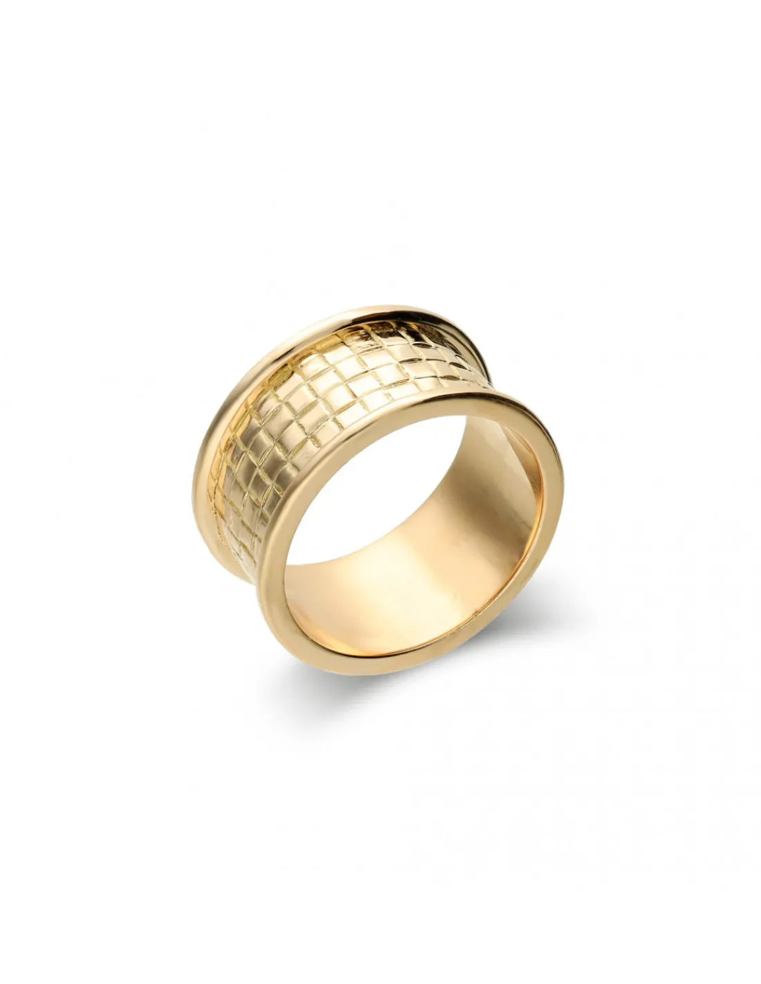 Anillo de oro amarillo 1ª Ley (750 mmas) con un moderno aro ancho estilo egipcio.