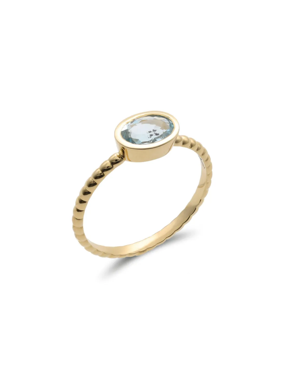 Anillo de oro amarillo 9 kt (375 mmas) con aro gallonado y aguamarina oval.