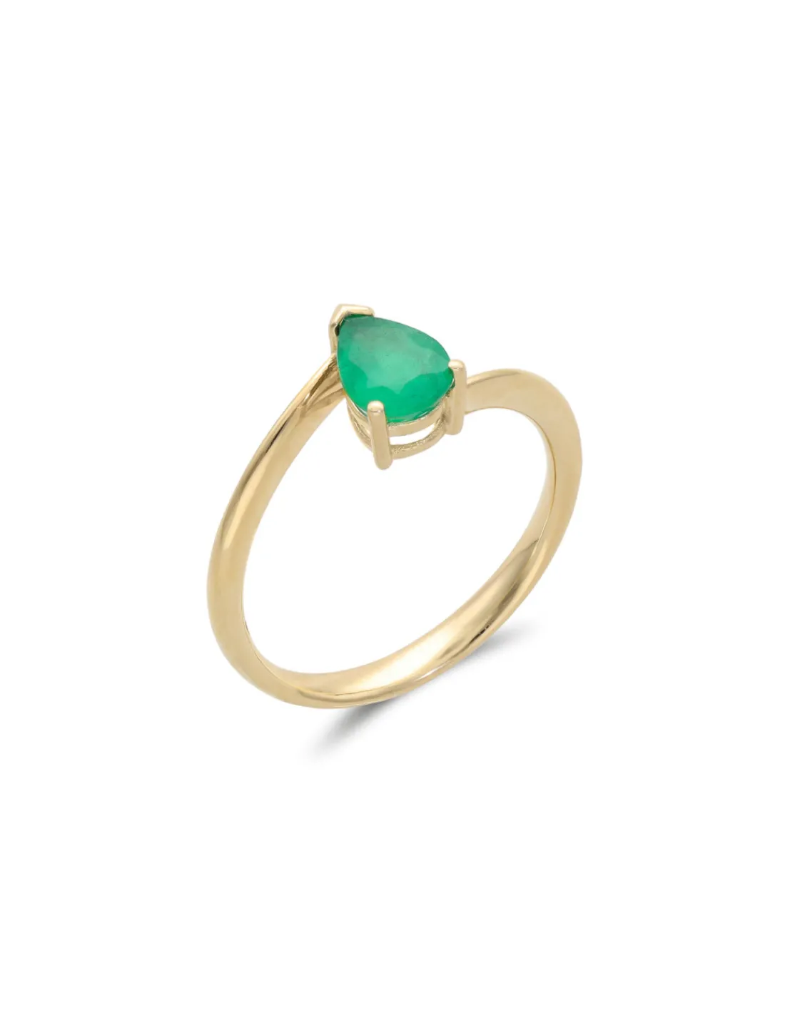 Anillo de oro amarillo 9 kt (375 mmas) con esmeralda talla pera.