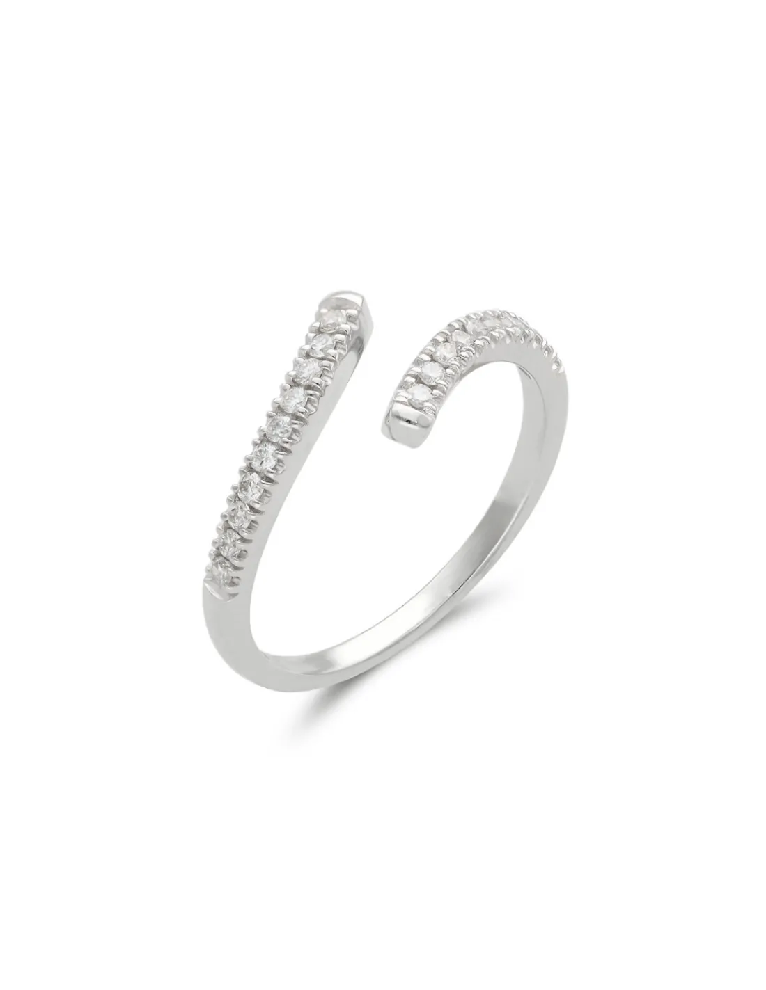 Anillo de oro blanco 1ª Ley (750 mmas) abierto con diamantes talla brillante. Una joya elegante y sofisticada.