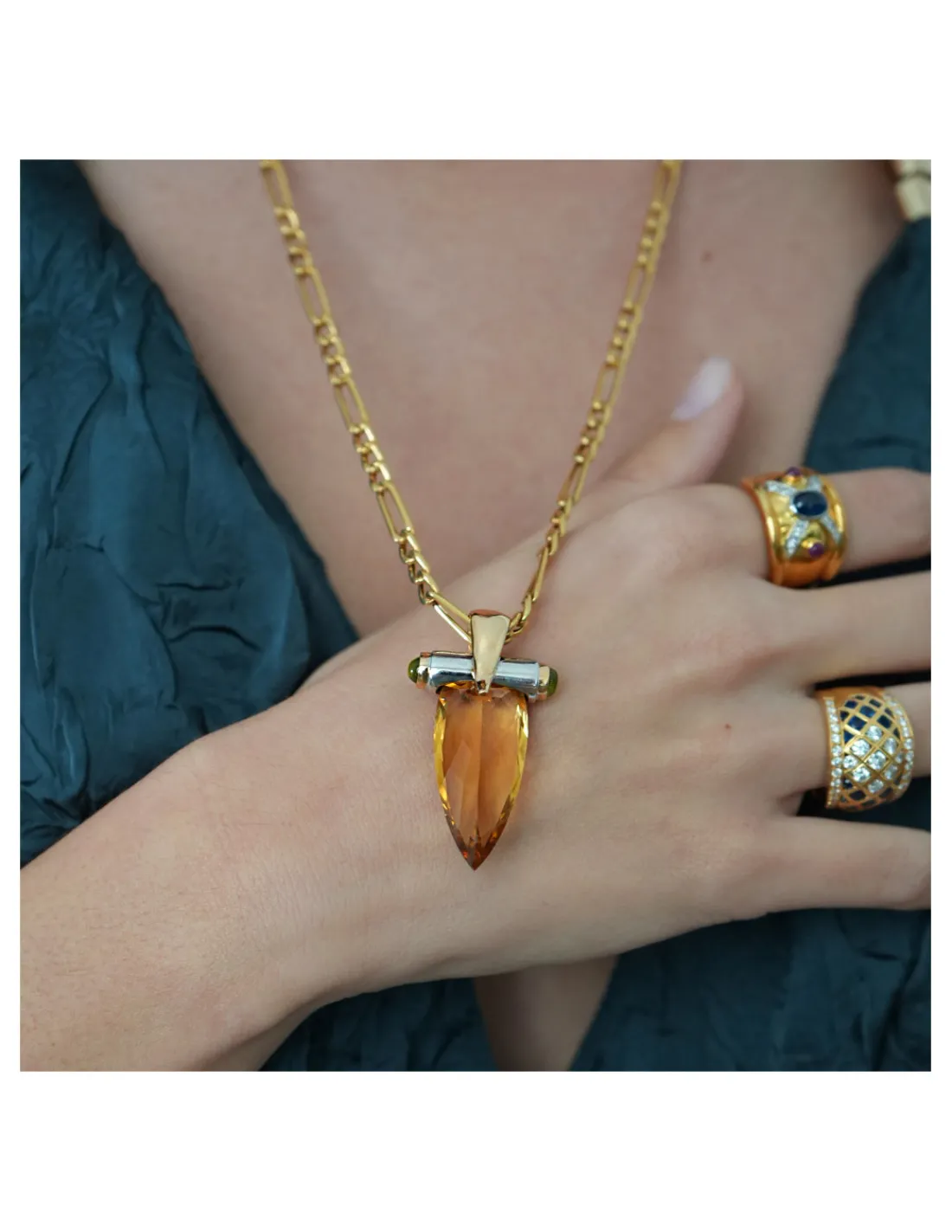 COLGANTE ORO ROSA-BLANCO CON CITRINO Y TURMALINAS