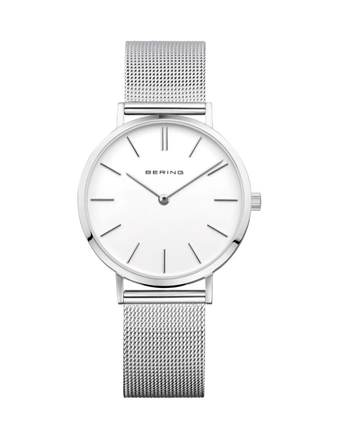 Reloj Bering Classic para mujer con caja de acero de 34 mm, elegante esfera blanca y correa de acero con malla milanesa. Una pieza atemporal que no deja de lado el diseño Danés.