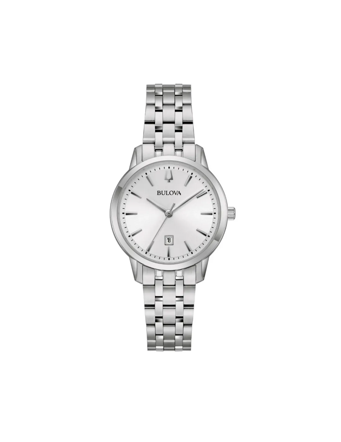 Reloj Bulova Sutton Lady con caja de acero inoxidable de 31 mm de diámetro, esfera analógica blanca y cristal mineral combinado con brazalete de acero. Movimiento de cuarzo.