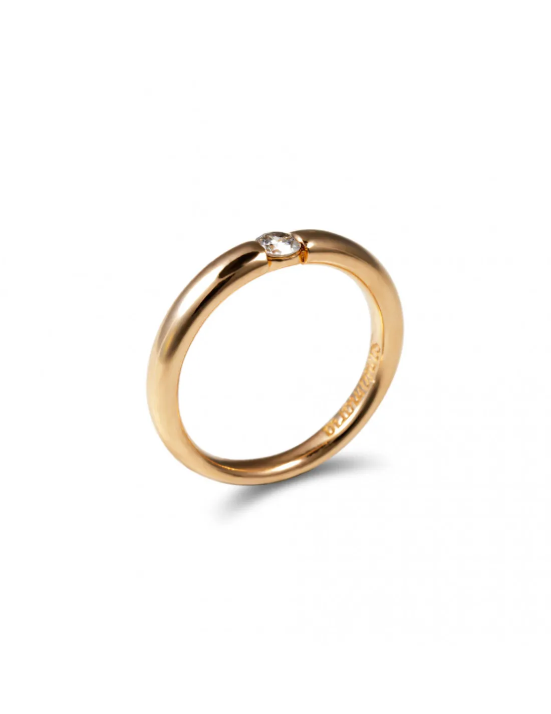 Anillo de oro rosa 1ª Ley (750 mmas) con aro redondo y un diamante natural talla brillante en el centro. Talla 12.