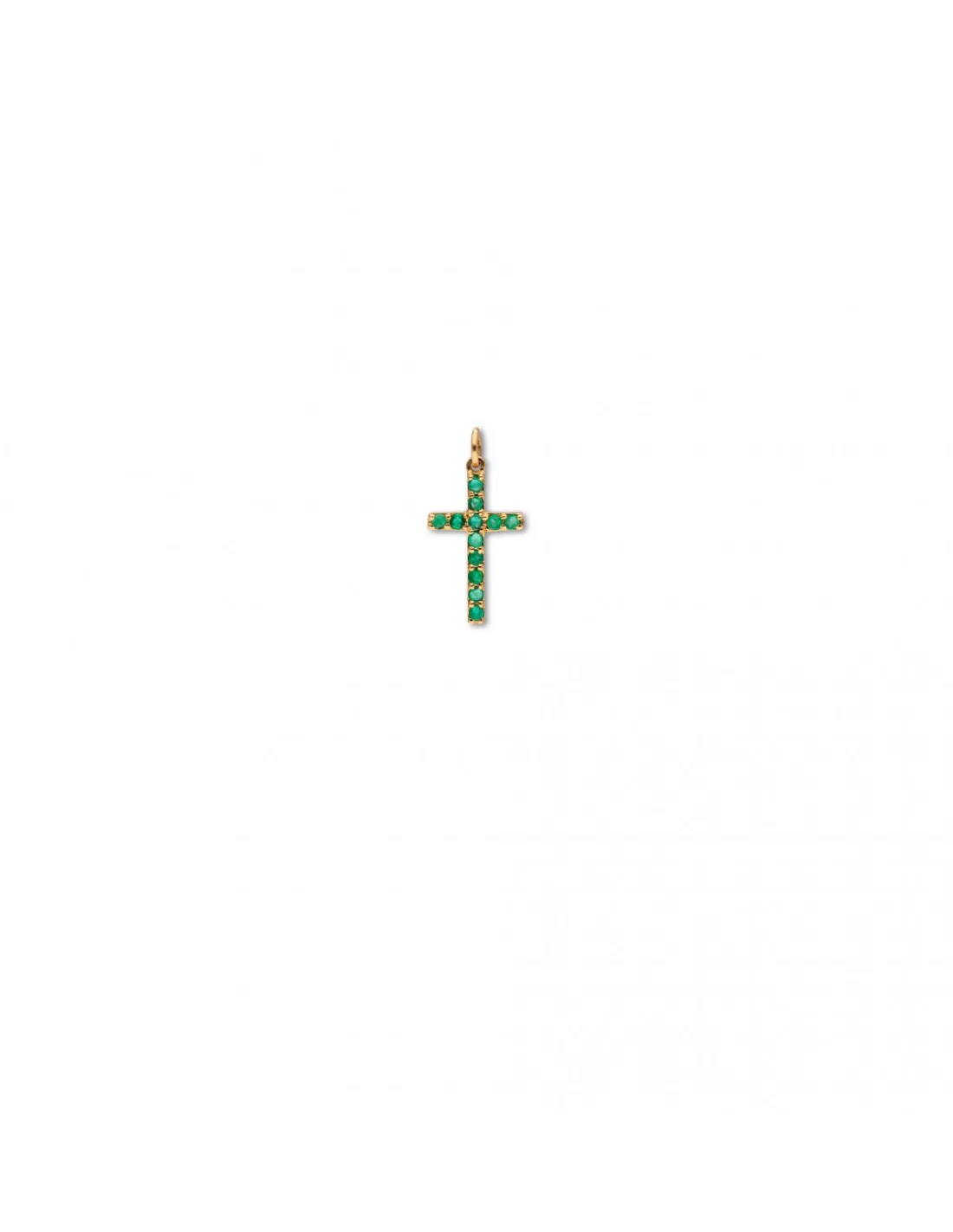 Cruz de oro amarillo 1ª Ley ( 750 mmas ) con esmeraldas redondas naturales engastadas en grano.