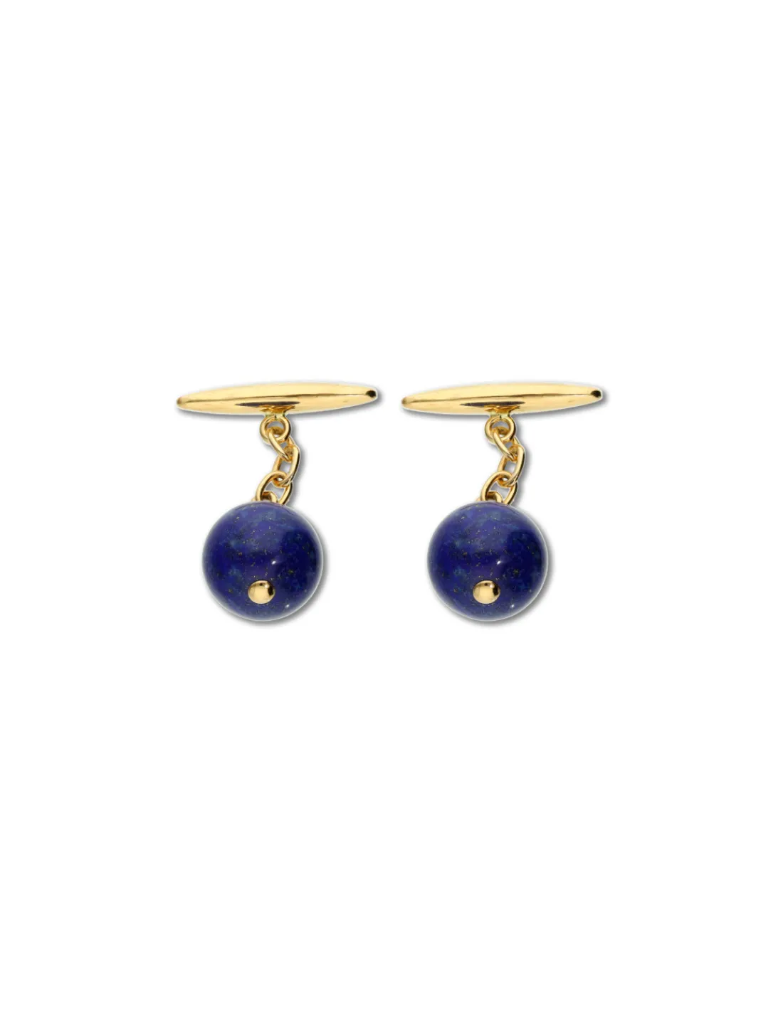 Gemelos de oro amarillo 1ª Ley (750 mmas) con lapislázuli natural redondo. Cierre de cadena y muletilla.