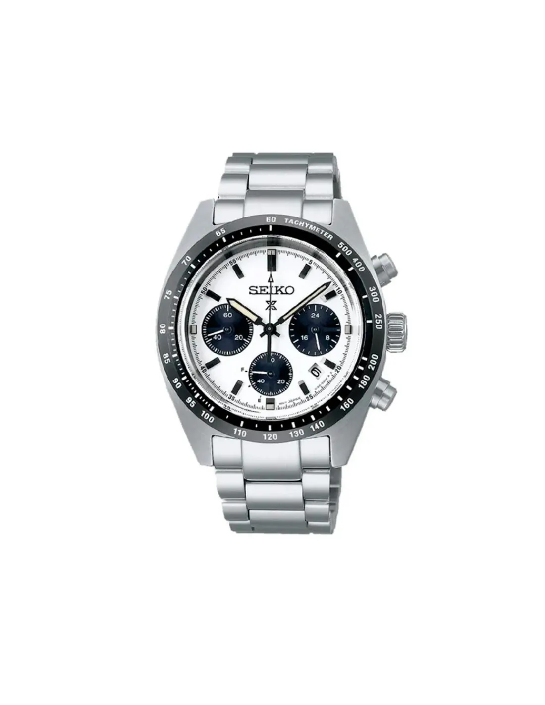 Reloj Seiko Prospex Speedtimer Crono SSC813P1 para hombre con caja de acero inoxidable, esfera color blanco y brazalete de acero. Movimiento solar japonés.