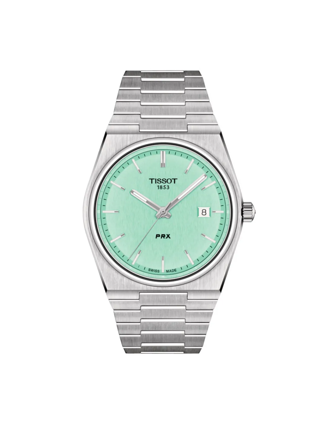 Reloj Tissot PRX T137.410.11.091.01 para hombre con caja de acero inoxidable, esfera verde claro y brazalete. Movimiento de cuarzo Swiss Made.