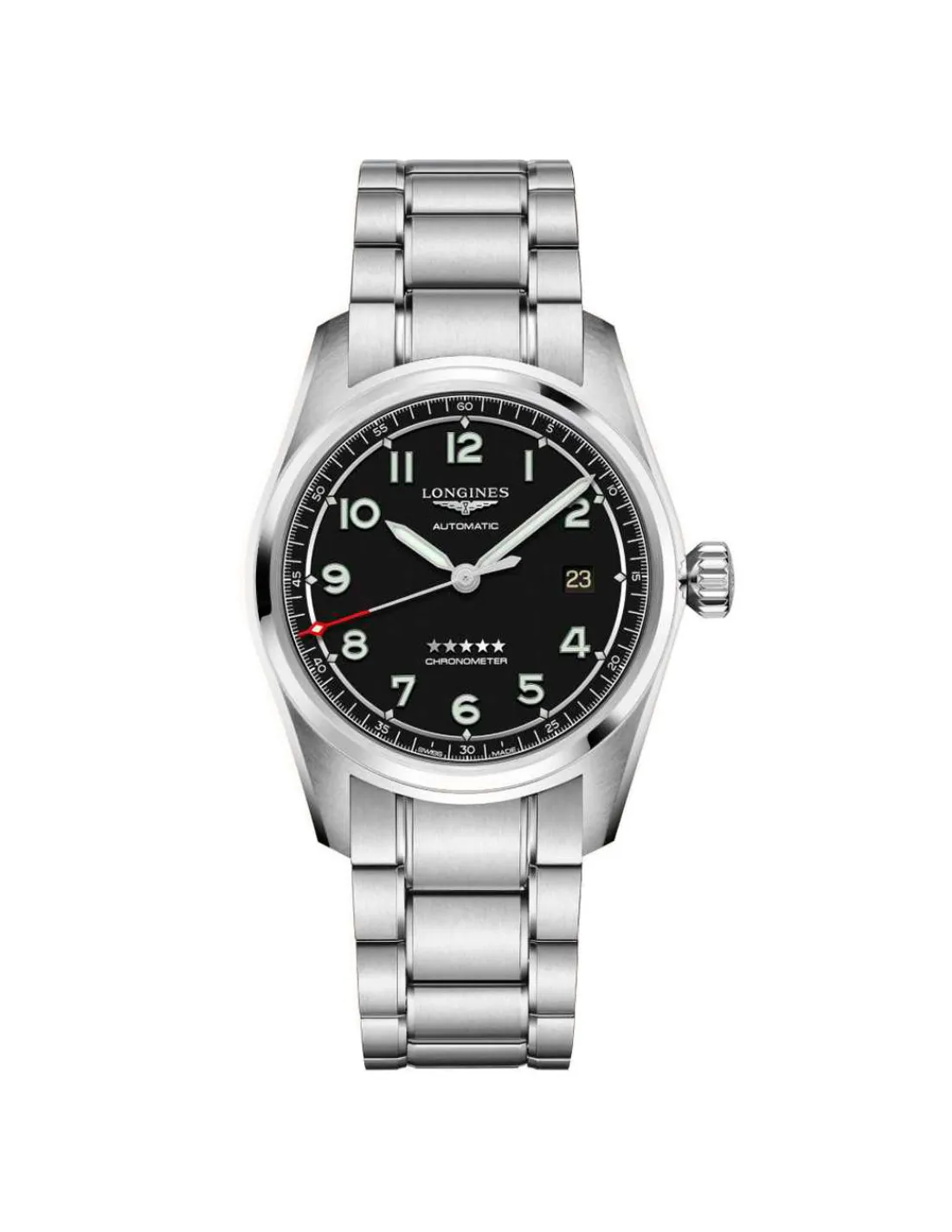 Reloj Longines Spirit Prestigie Edition L3.810.4.53.9 para hombre con esfera negra combinada con números árabes, caja y brazalete de acero. Movimiento automático Swiss Made con 5 años de garantía.