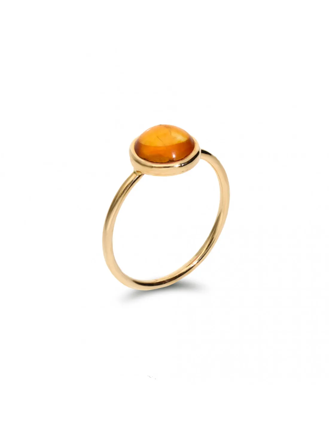 Anillo de oro amarillo 1ª Ley (750mmas) de aro redondo con citrino cabujón engastado en el centro. Una joya fina y versátil para combinar en varios colores o para llevar una con un look más minimalista. Talla 10.
