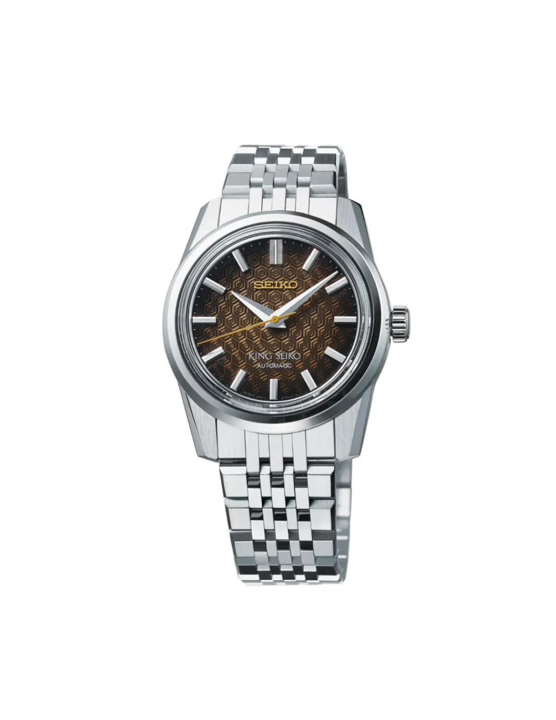 Reloj King Seiko Watchmaking 110th Anniversary Limited Edition SPB365J1 para hombre con caja de acero inoxidable, esfera marrón y brazalete. Movimiento automático con capacidad de carga manual.