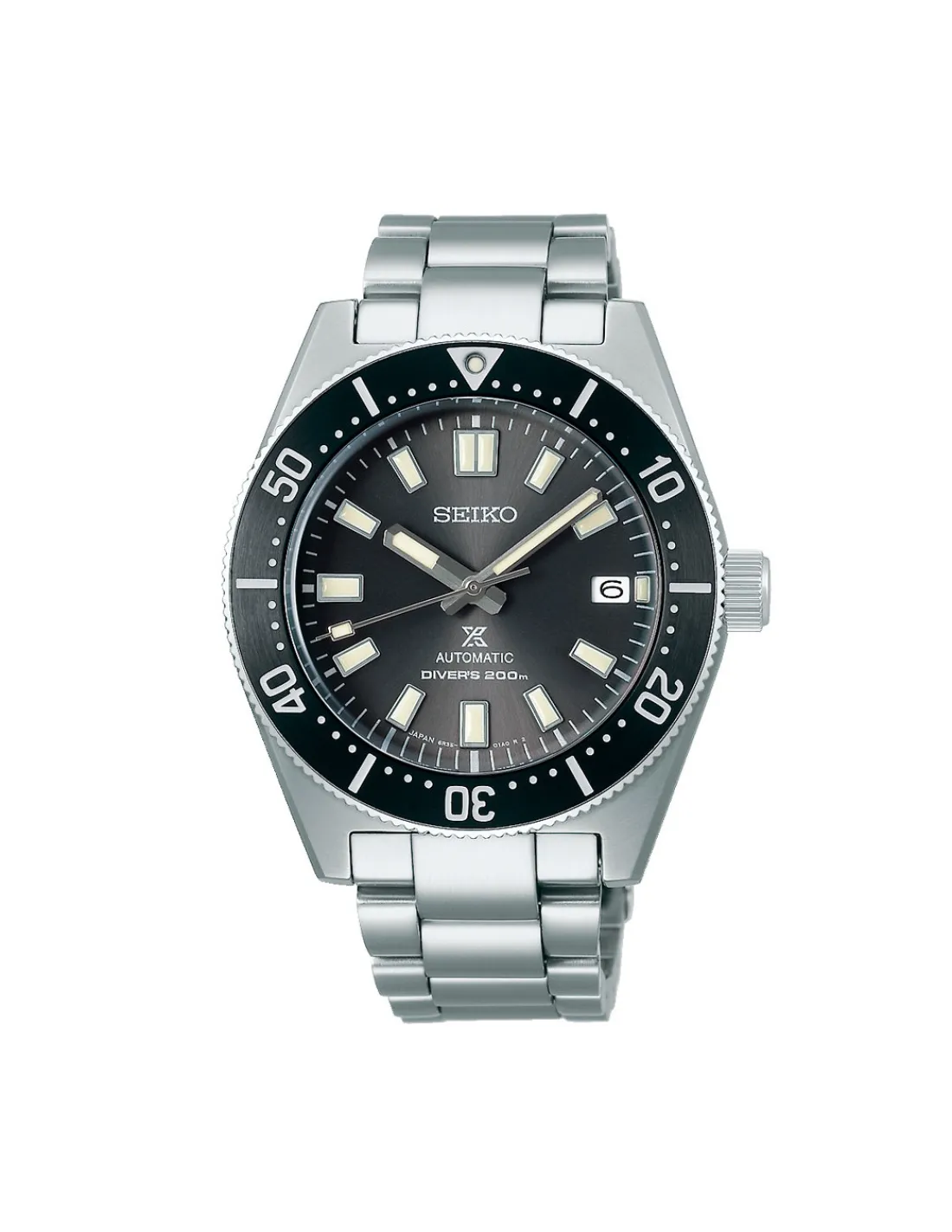 Reloj Seiko Prospex Mar Divers para hombre con brazalete y caja de acero de 40,5 mm de diámetro que combina con una deportiva esfera negra con índices y agujas luminiscentes y bisel color negro. Movimiento automático calibre 6R35 con reserva de marcha de aproximadamente 50 horas.