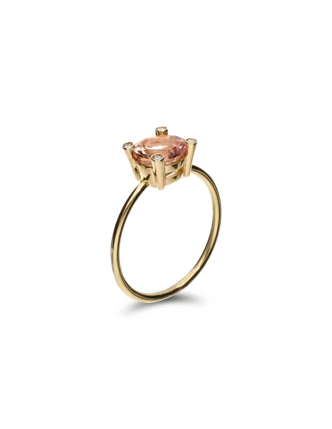 Anillo de oro amarillo 1ª Ley (750 mmas) con morganita central y diamantes.