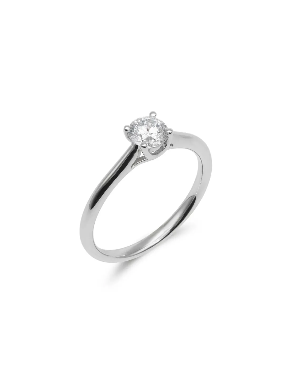 Anillo-Solitario de oro blanco 1ª Ley (750 mmas) con diamante de laboratorio talla brillante en el centro engastado en cuatro garras. Certificado IGI.