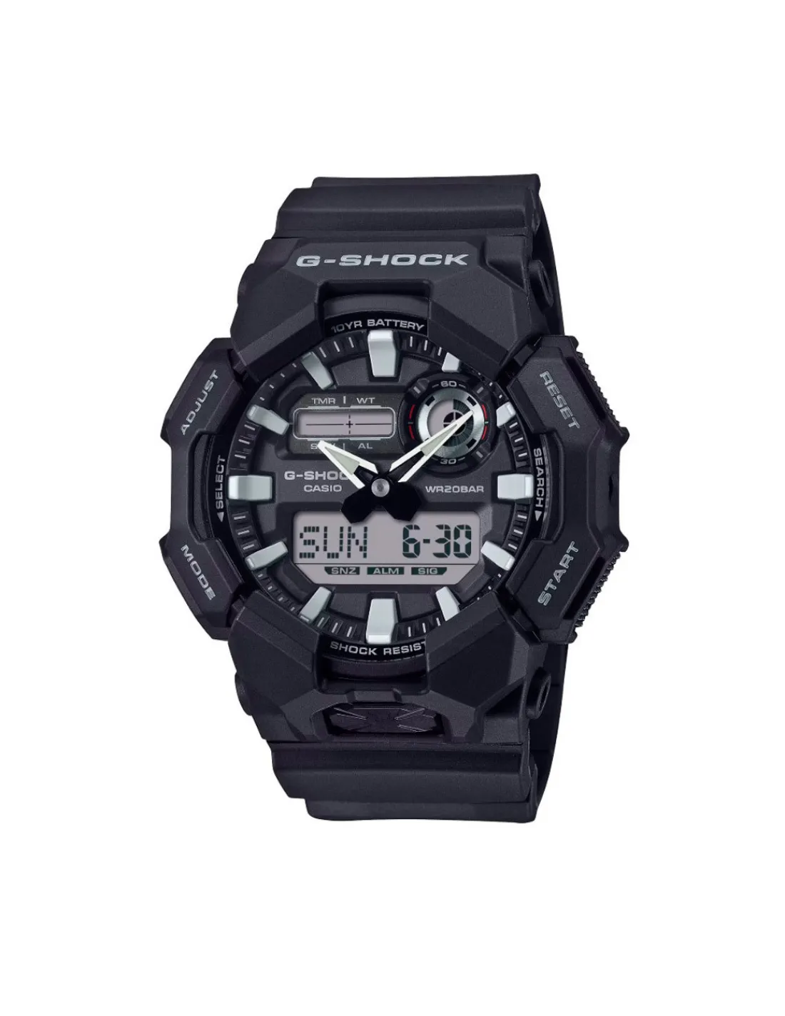 Reloj Casio G-Shock GA-010-1A1ER con carcasa de carbono/resina de base biológica, esfera analógica/digital y correa de resina. Duración aproximada de la batería: 10 años en CR2025.