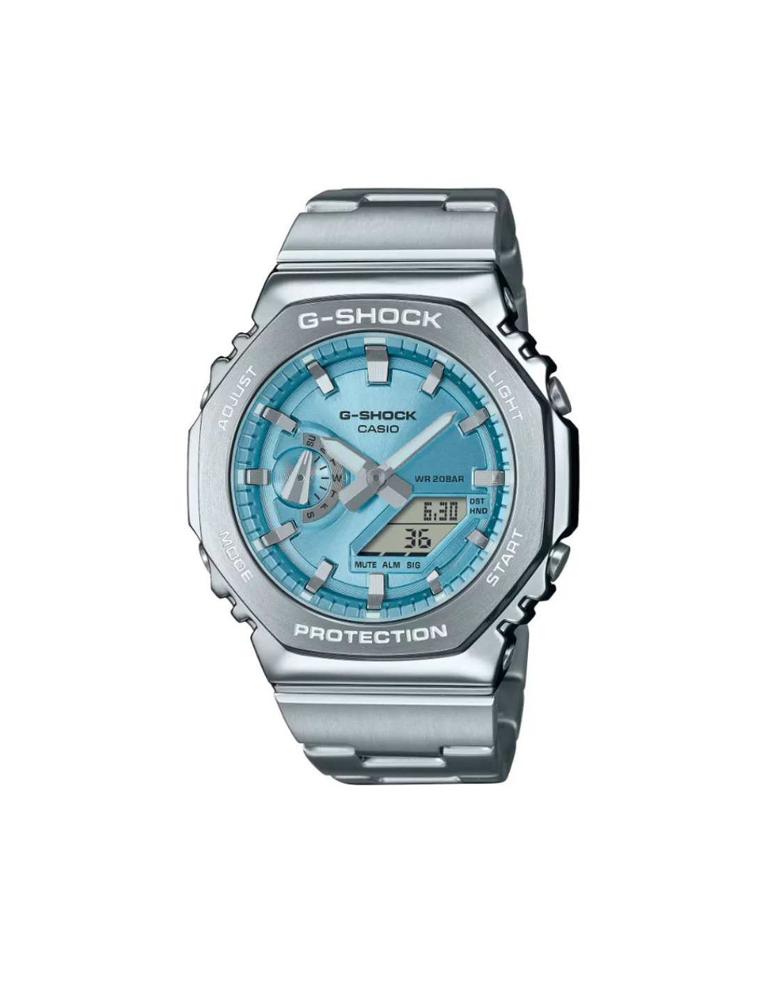 Reloj Casio G-Shock GM-2110D-2AER con caja de acero inoxidable/resina, esfera metálica de latón color azul cielo y brazalete. Movimiento de cuarzo.