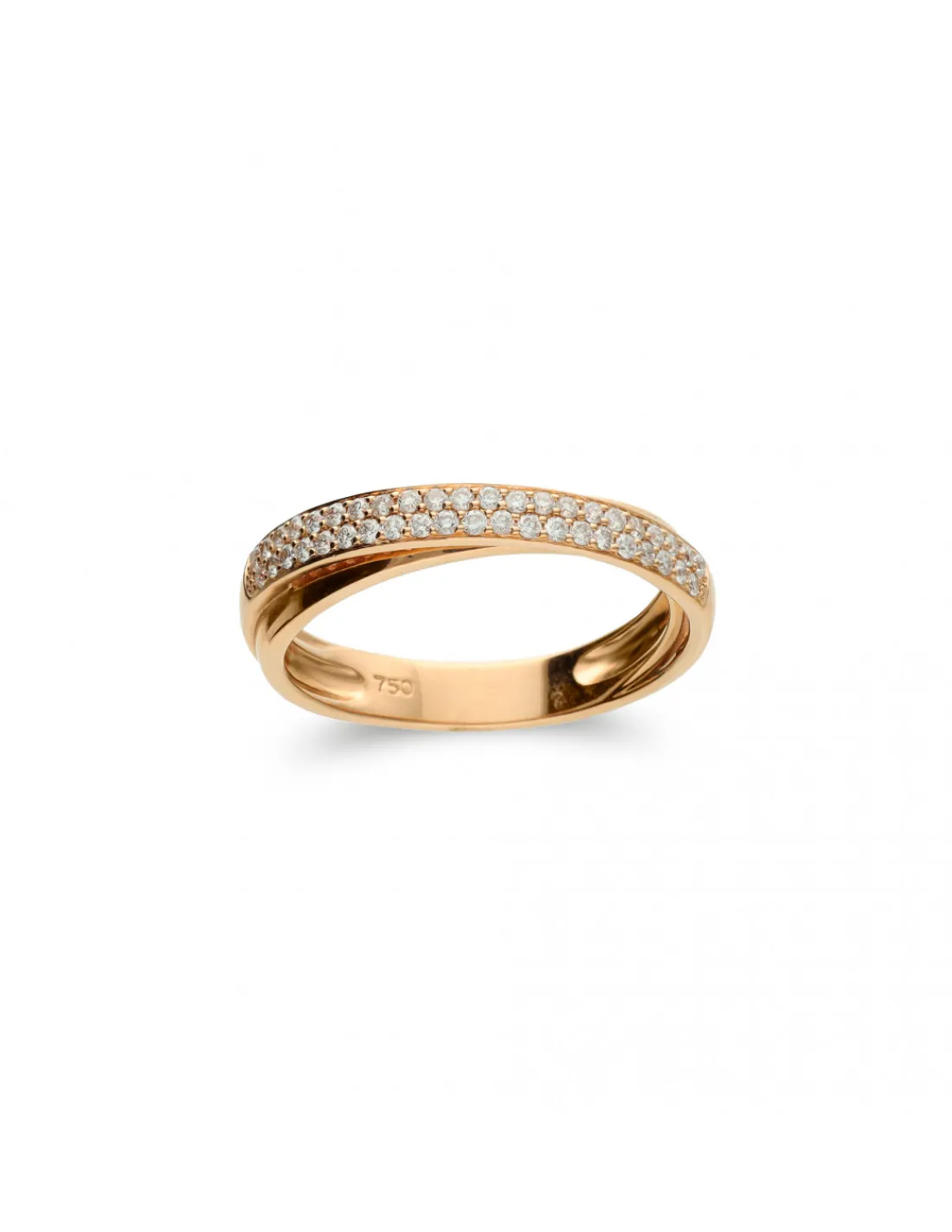 Anillo de oro rosa 1ª Ley (750 mmas) entrelazado con diamantes talla brillante. Una joya atemporal que aporta brillo y elegancia.