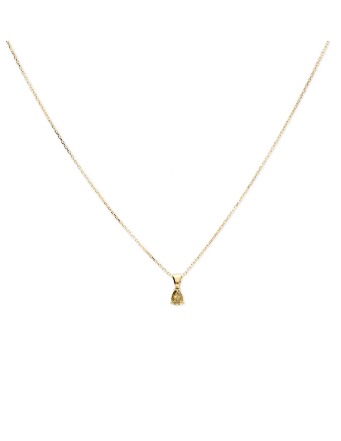 Cadena-Colgante de oro amarillo 1ª Ley (750 mmas) con un diamante fancy talla pera engastado en garras. Longitud cadena 42 cm. Tamaño del colgante incluyendo reasa 9 mm.