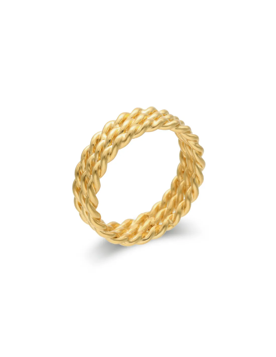 Anillo de plata 1ª Ley (925 mmas) chapado en oro amarillo con triple aro trenzado.