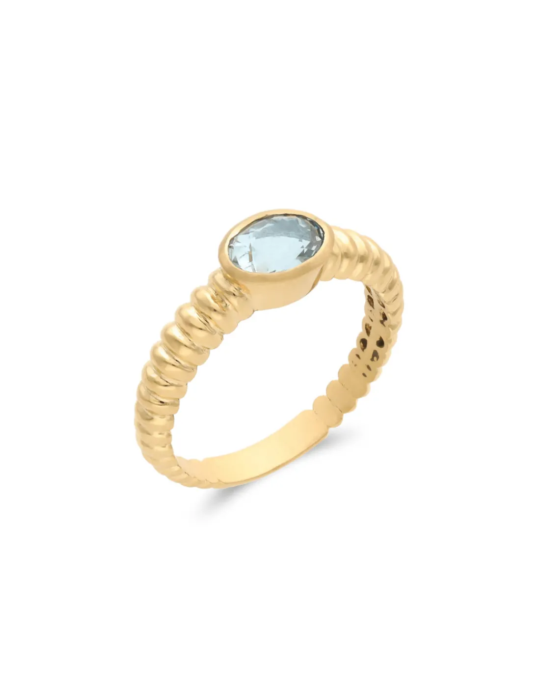 Anillo de oro amarillo 1ª Ley (750 mmas) con aro gallonado y aguamarina oval.