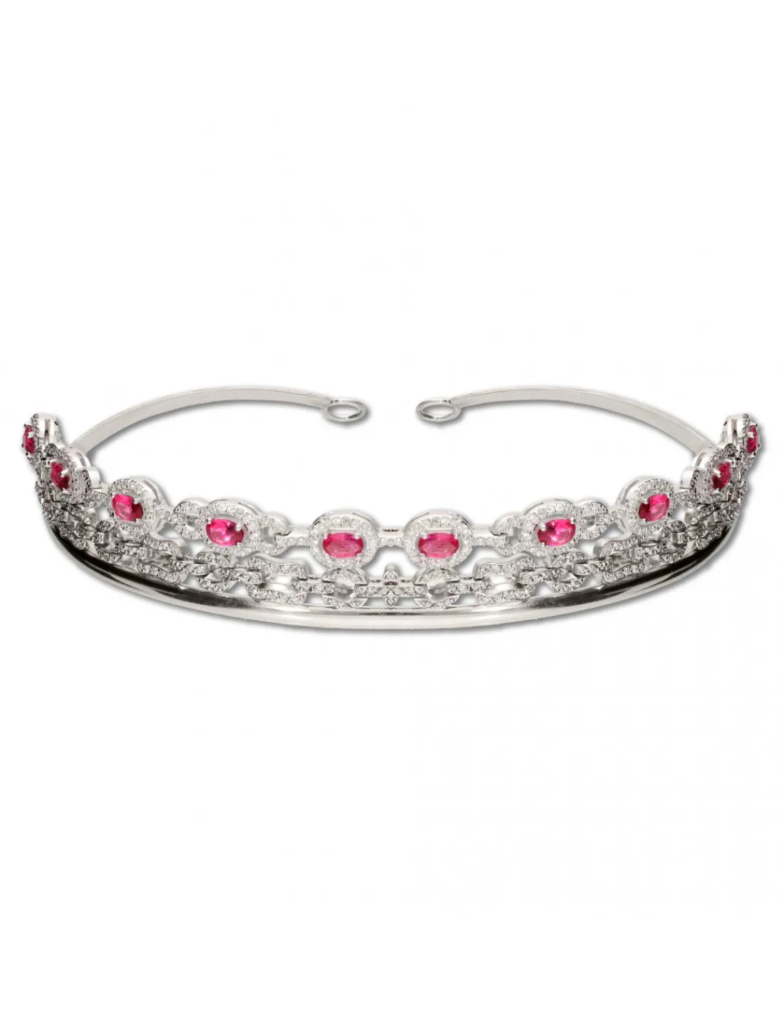 Diadema de plata 1ª Ley (925 mmas) con circonitas y piedras rosas de imitación al zafiro. El complemento ideal para novias que buscan una joya artesanal que pase de generación en generación.