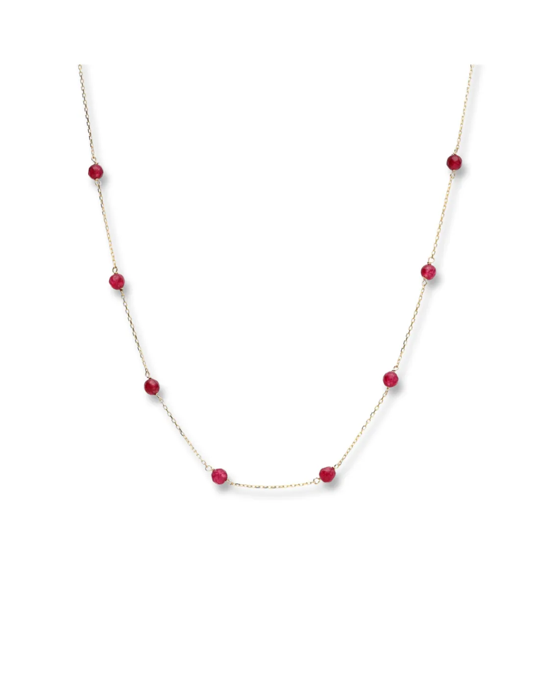Gargantilla de oro amarillo 9 kt (375 mmas) con jade rojo redondo. Una joya ideal para el día a día. Longitud 39,5 cm.