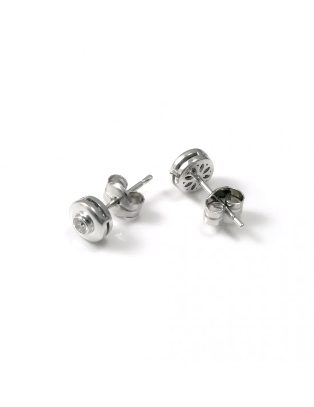 Pendientes dormilonas en Oro Blanco 1º Ley ( 750 mmas ) con diamantes engastados en boquilla. Un clásico ideal para una novia y para usar día a día.