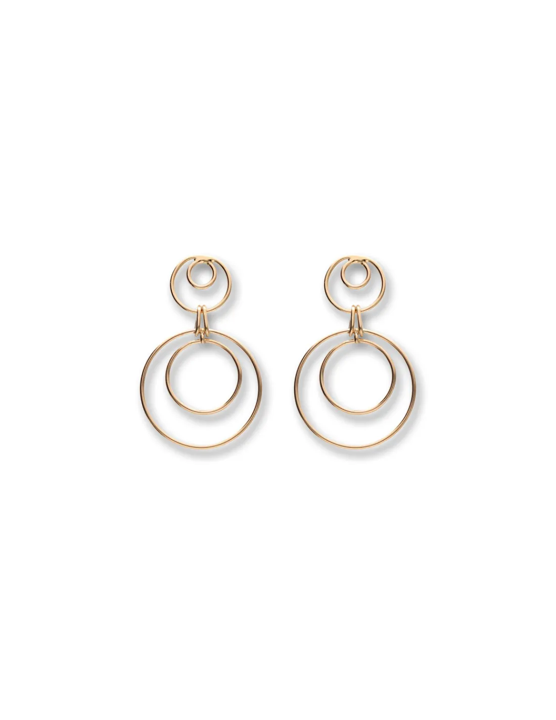 Pendientes de oro amarillo 1ª Ley (750 mmas) sencillos y elegantes con círculos. Un diseño en tendencia que combina con todos los estilos.