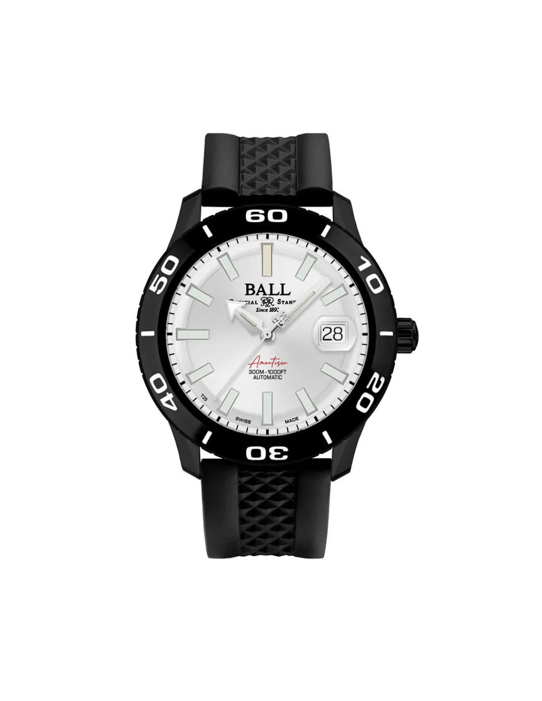 Reloj Ball Fireman NECC DM3090A-P10J-SL para hombre con caja de acero con revestimiento de carburo de titanio TiC, esfera plateada con índices y manecillas luminiscentes combinado con correa de caucho negra. Movimiento automático Swiss Made.