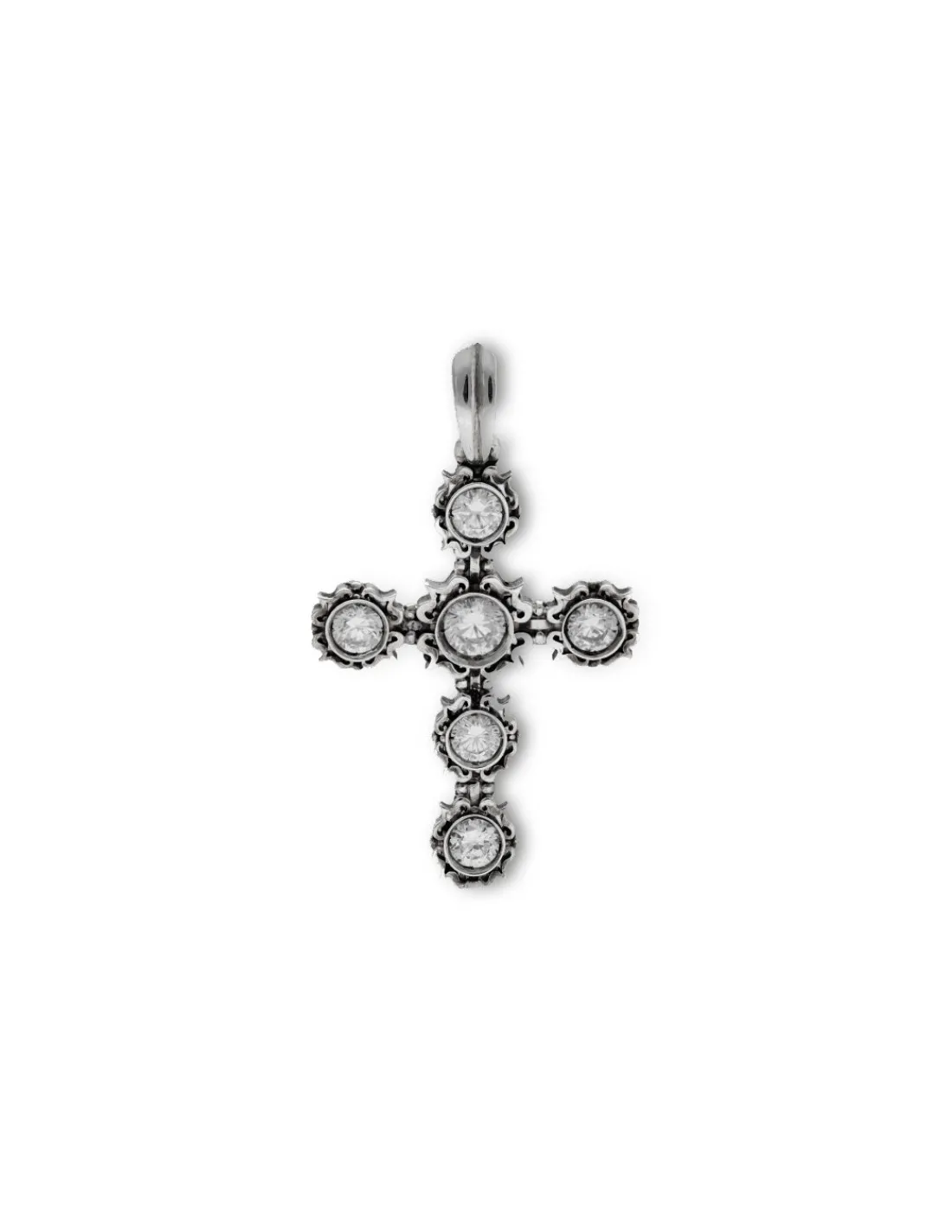 Colgante cruz plata 1º ley con circonitas. Una joya vintage ideal para combinar con una bonita cadena o un cordón de seda.